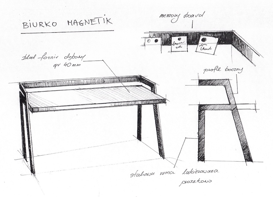 Dodatkowo, biurko wyposażono w praktyczną listwę, na której za pomocą magnesów można przyczepiać notatki, organizując przestrzeń pracy w wygodny i estetyczny sposób.