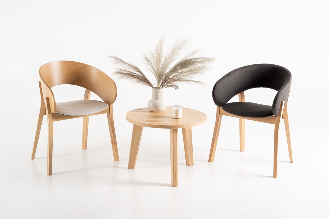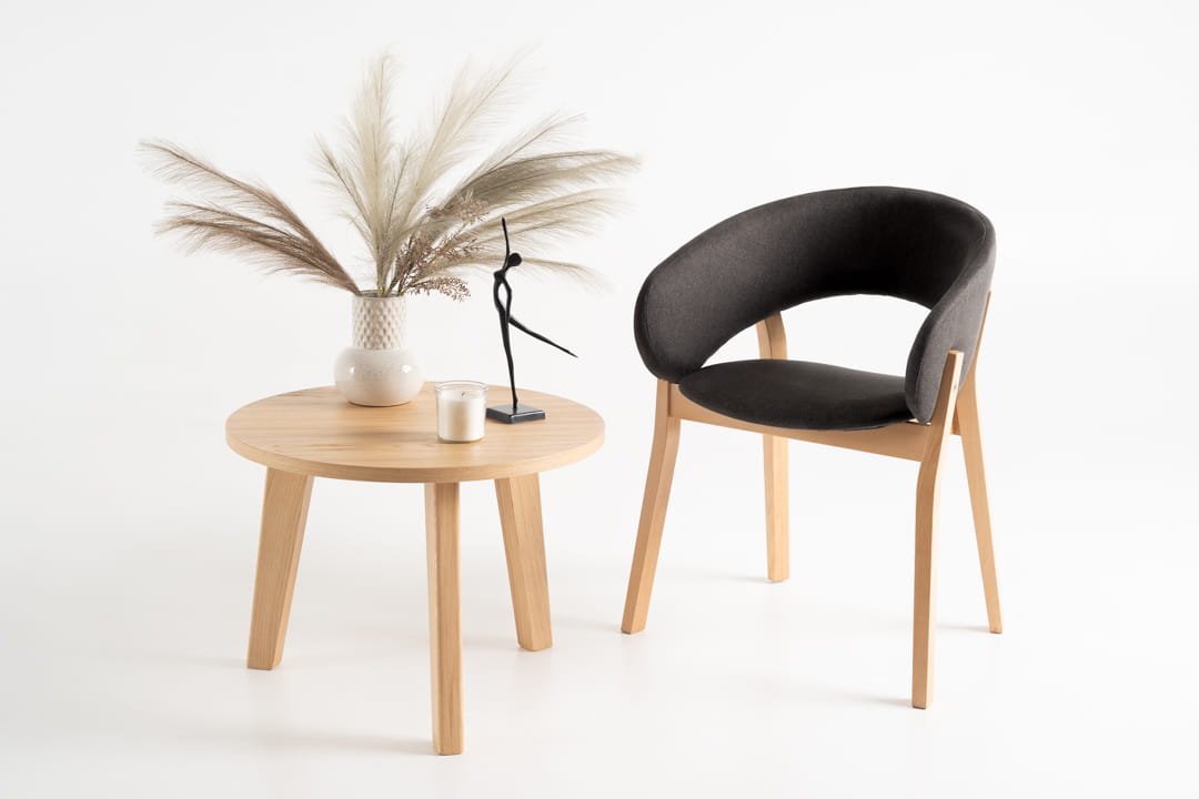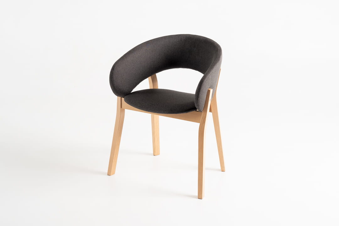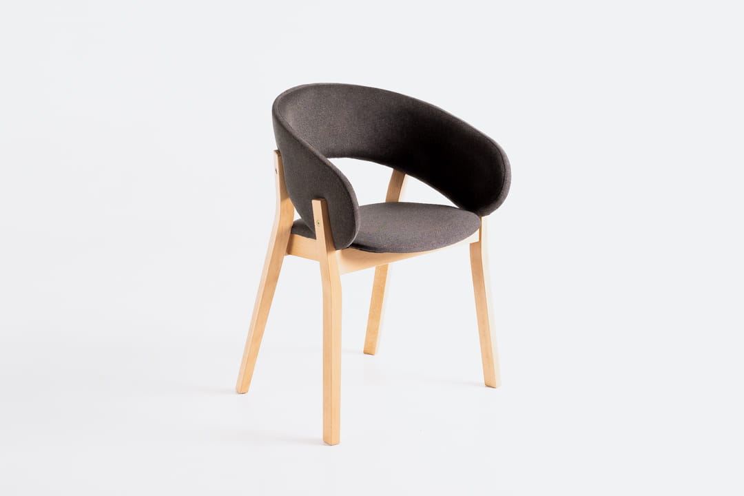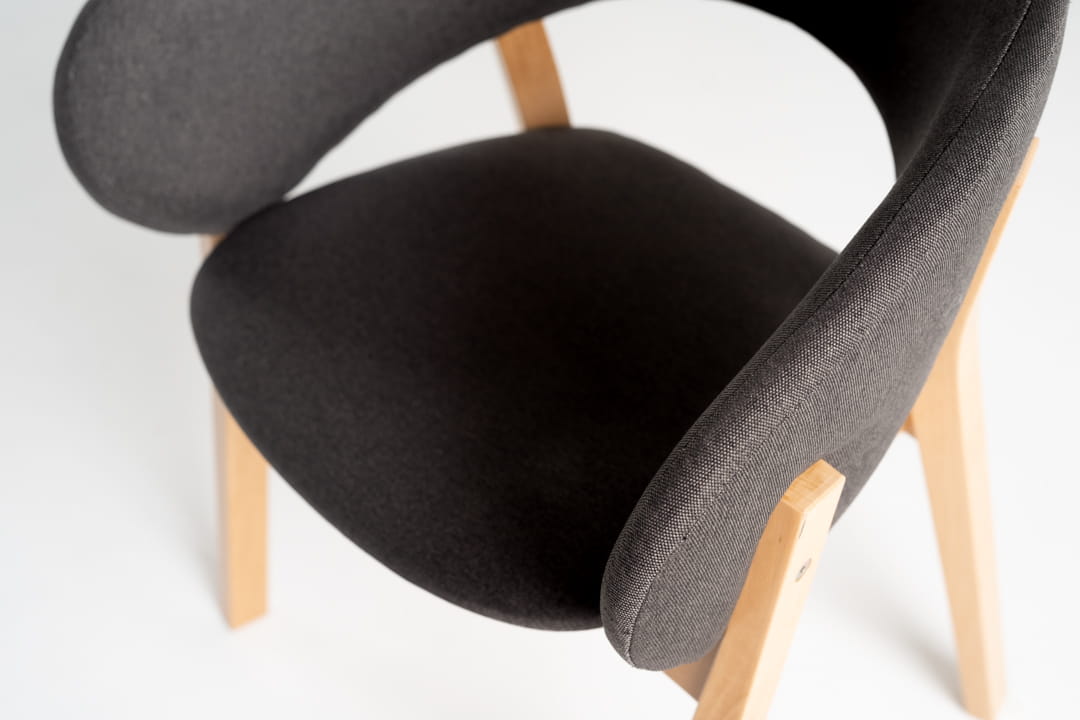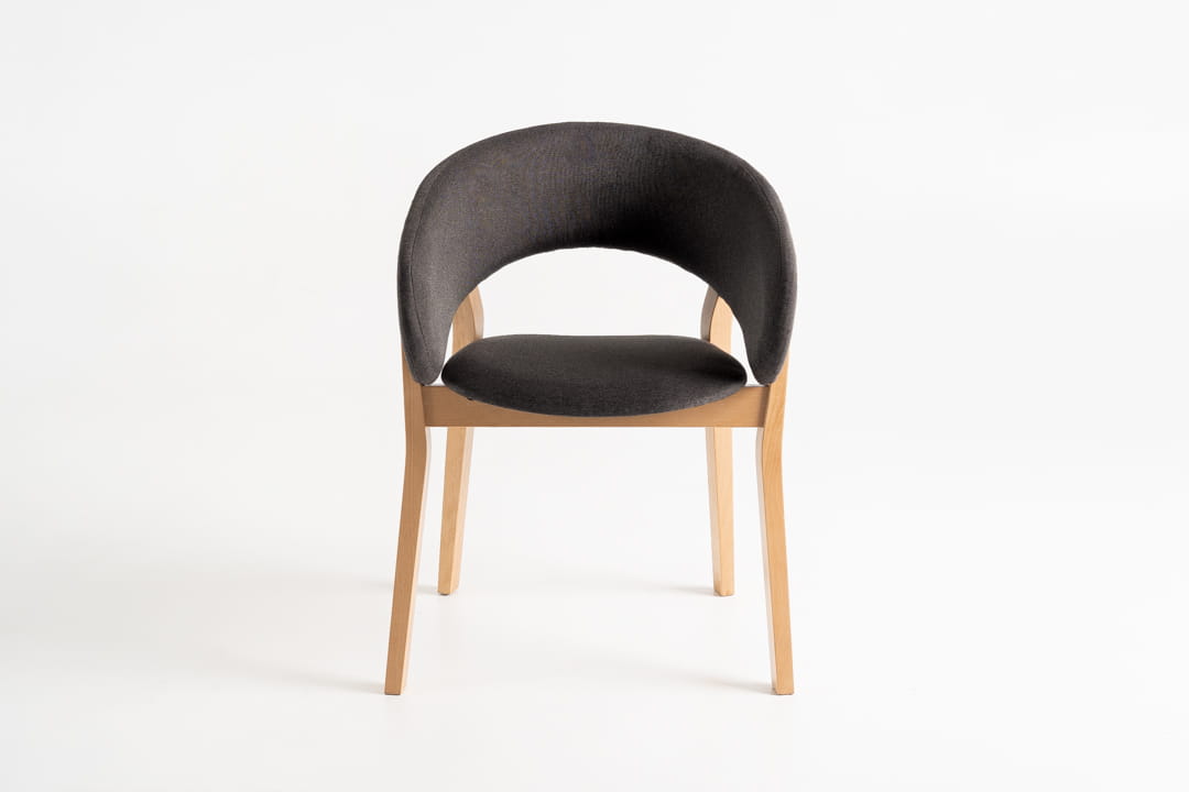 Krzesło ARCO arm marki Simplyform – to nowoczesne krzesło tapicerowane z prostą podstawą i wygiętym, profilowanym oparciem, doskonale wpisuje się w każde wnętrze.