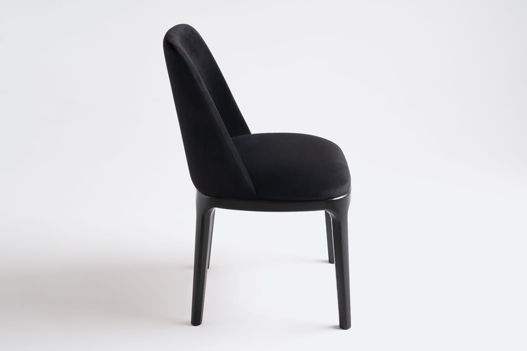 Solidna bukowa podstawa dostępna w wybarwieniach: buk naturalny, orzech oraz czarny, gwarantuje trwałość i stabilność. Krzesło występuje w dwóch wersjach – z podłokietnikami i bez, co pozwala na dopasowanie do indywidualnych potrzeb. Tapicerowane siedzisko zapewnia komfort, a możliwość personalizacji tkaniny umożliwia stworzenie unikalnego mebla.