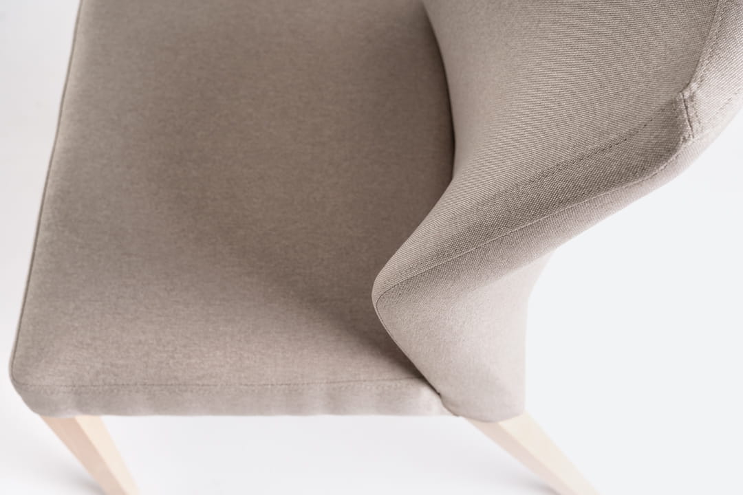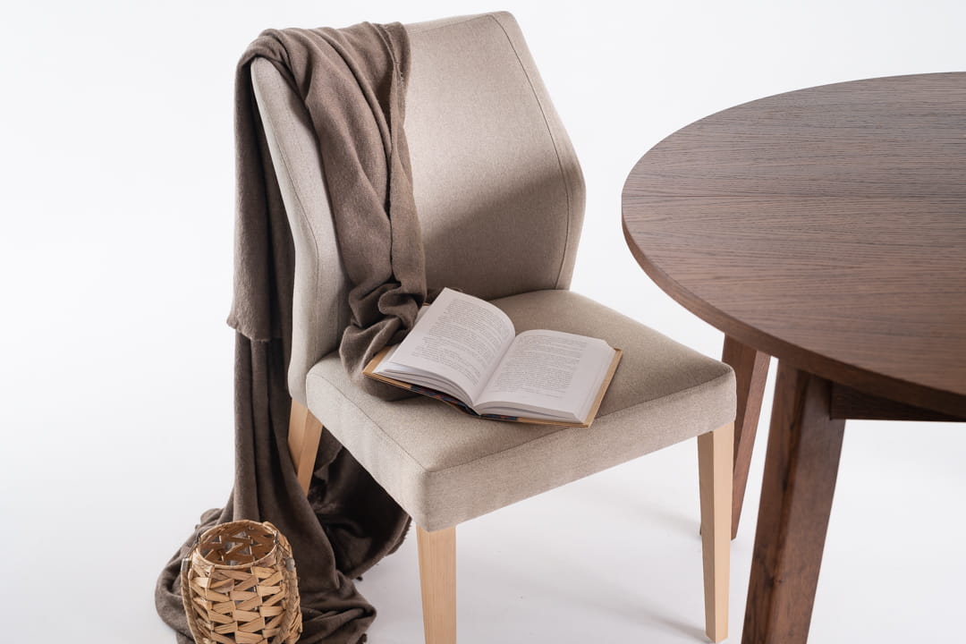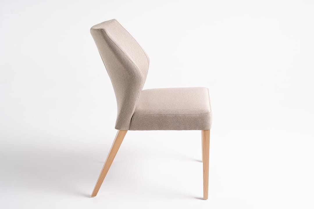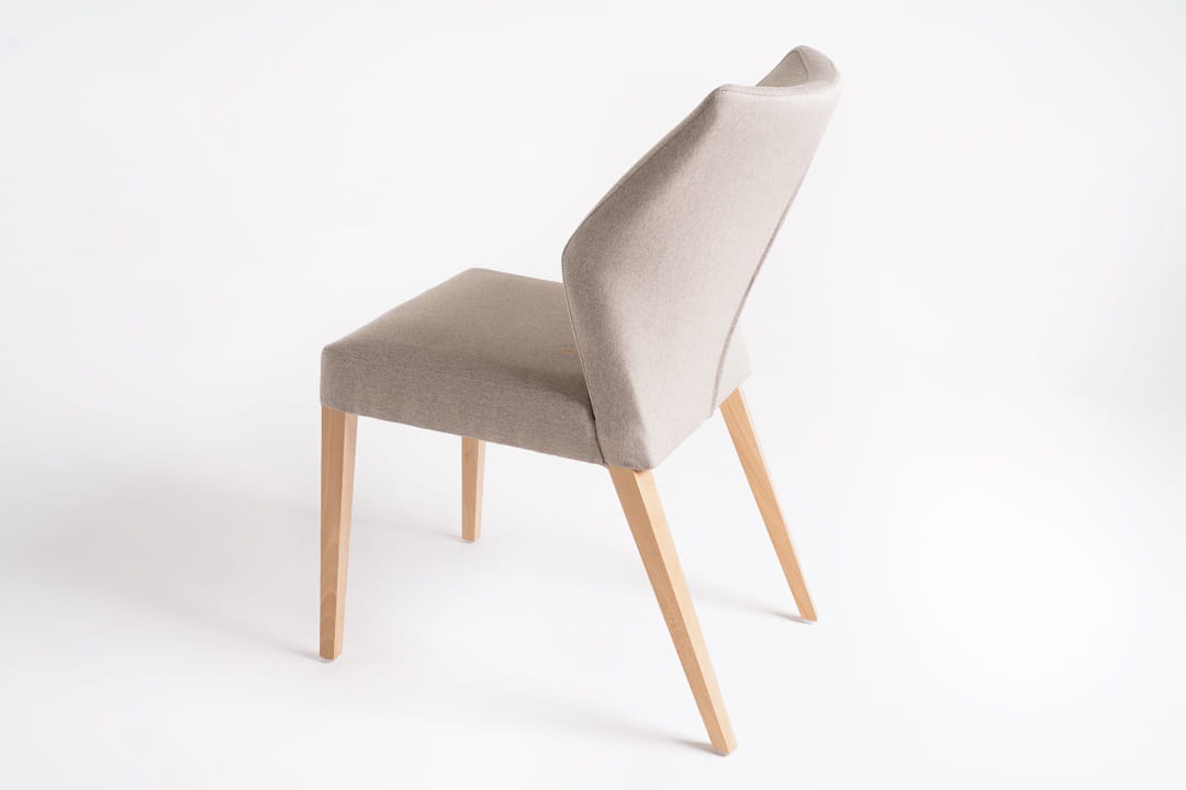 Designerskie krzesło z litego buku o minimalistycznym stylu nie tylko wygląda świetnie, ale również oferuje niezrównany komfort dzięki tapicerowanemu oparciu i siedzisku. Te elementy zapewniają doskonałe wsparcie i wygodę nawet podczas długotrwałego siedzenia.Tylne nogi krzesła są pochylone pod lekkim kątem- co dodaję formie dynamiki i wyróżnia je spośród innych mebli na rynku.