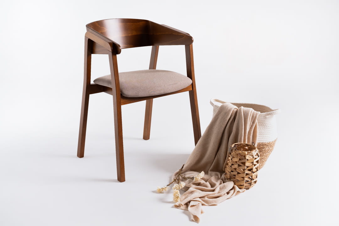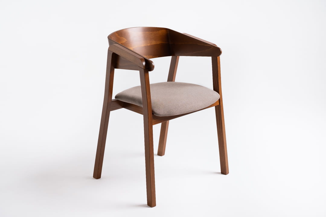 Krzesło YUKI wyróżnia się oryginalnym kształtem podłokietników z litego drewna przechodzących w nogę krzesła. To rozwiązanie nadaje mu unikalnego charakteru oraz podkreśla jego stabilność. Uniwersalność mebla i możliwości personalizacji przez wybór wybarwienia – dąb, orzech, lub czarny – oraz dobór rodzaju i koloru tapicerki, pozwalają na dostosowanie krzesła do stylu każdej przestrzeni.