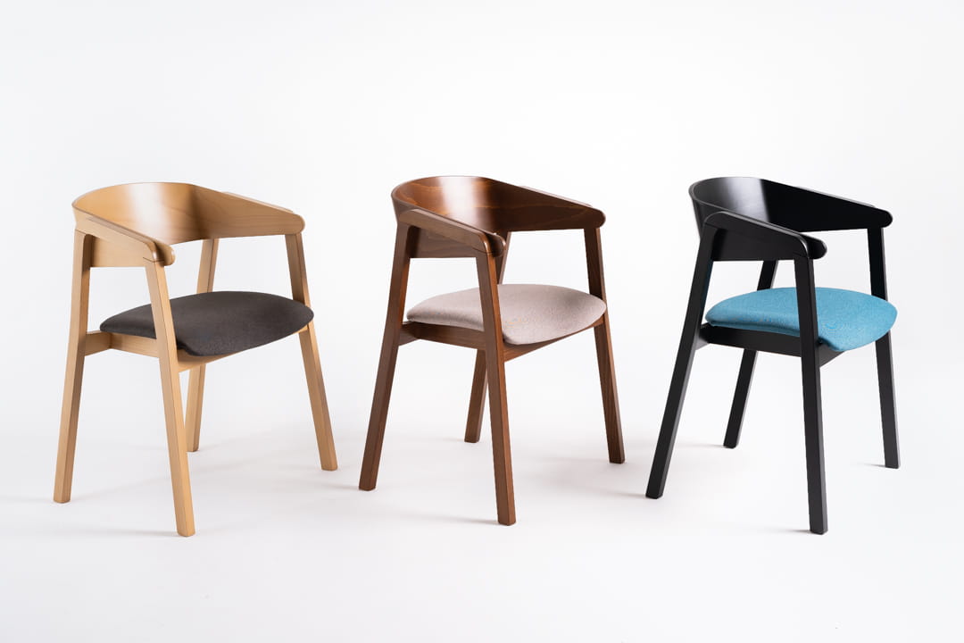 Krzesło YUKI wyróżnia się oryginalnym kształtem podłokietników z litego drewna przechodzących w nogę krzesła. To rozwiązanie nadaje mu unikalnego charakteru oraz podkreśla jego stabilność. Uniwersalność mebla i możliwości personalizacji przez wybór wybarwienia – dąb, orzech, lub czarny – oraz dobór rodzaju i koloru tapicerki, pozwalają na dostosowanie krzesła do stylu każdej przestrzeni.