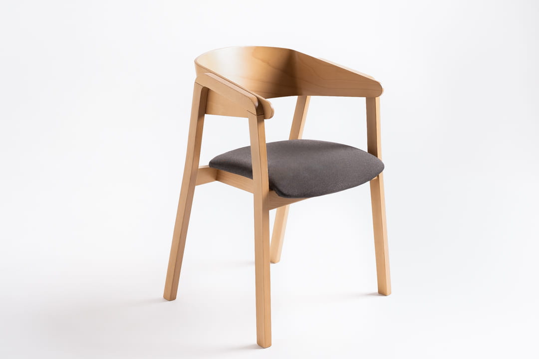 Krzesło YUKI wyróżnia się oryginalnym kształtem podłokietników z litego drewna przechodzących w nogę krzesła. To rozwiązanie nadaje mu unikalnego charakteru oraz podkreśla jego stabilność. Uniwersalność mebla i możliwości personalizacji przez wybór wybarwienia – dąb, orzech, lub czarny – oraz dobór rodzaju i koloru tapicerki, pozwalają na dostosowanie krzesła do stylu każdej przestrzeni.