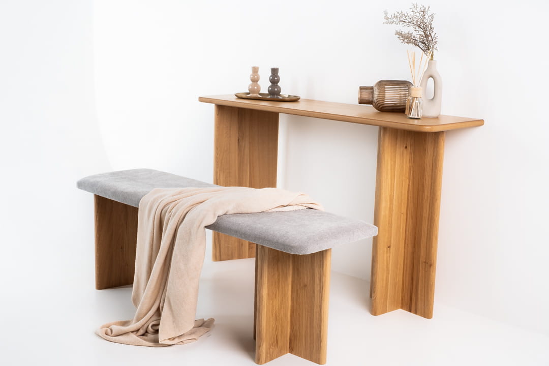 Możesz spersonalizować ją zgodnie z własnym stylem – wybierając blat z forniru dębowego , tapicerowany lub z lakierowanego MDF-u. Dzięki temu ławka staje się idealnym uzupełnieniem każdego wnętrza – od nowoczesnego po klasyczne. A jeśli cenisz spójne zestawy, w tej samej kolekcji znajdziesz konsolę Slash oraz taboret DOT, które wspólnie stworzą wyjątkową aranżację od wejścia do Twojego domu.