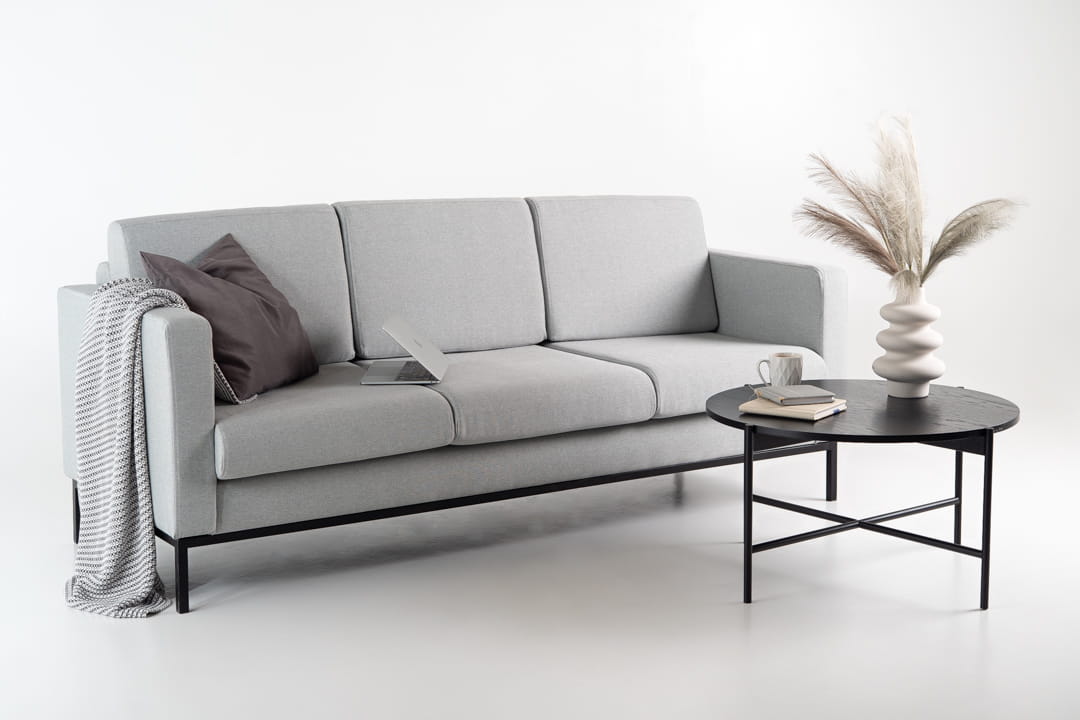 Sofa NORDIENT - wyróżnia ją prosta, klasyczna forma w stylu skandynawskim, trzy niezależne poduszki gwarantujące komfort oraz solidna metalowa rama, która nadaje stabilności i wytrzymałości. Sofa świetnie sprawdzi się zarówno w nowoczesnym salonie, wnętrzu loftowym, jak i w przestrzeni biurowej czy lobby.