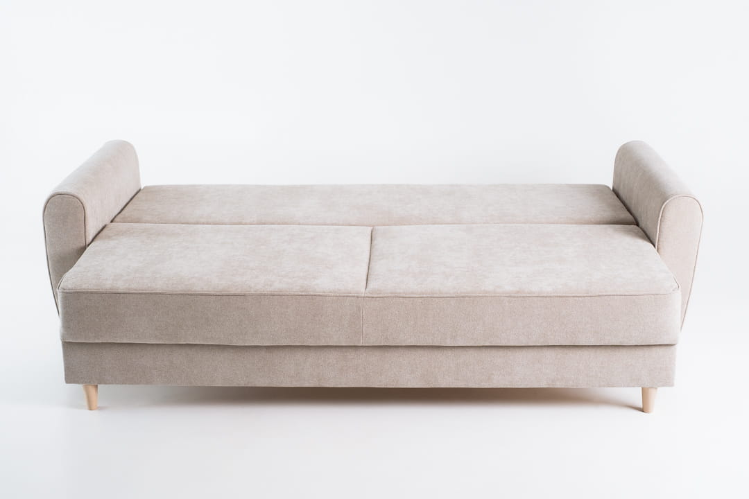 Największą zaletą modelu Luna jest system rozkładania DL, który w prosty i szybki sposób zamienia sofę w komfortową powierzchnię spania. Wystarczy wysunąć siedzisko i opuścić oparcie – mechanizm działa płynnie i bez wysiłku. Funkcjonalność dopełnia pojemnik na pościel, dzięki któremu zyskasz dodatkową przestrzeń do przechowywania.