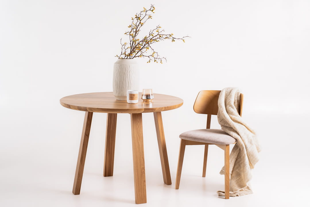 Stół okrągły LIVIO A marki Simplyform – elegancja i naturalność w ponadczasowej formie