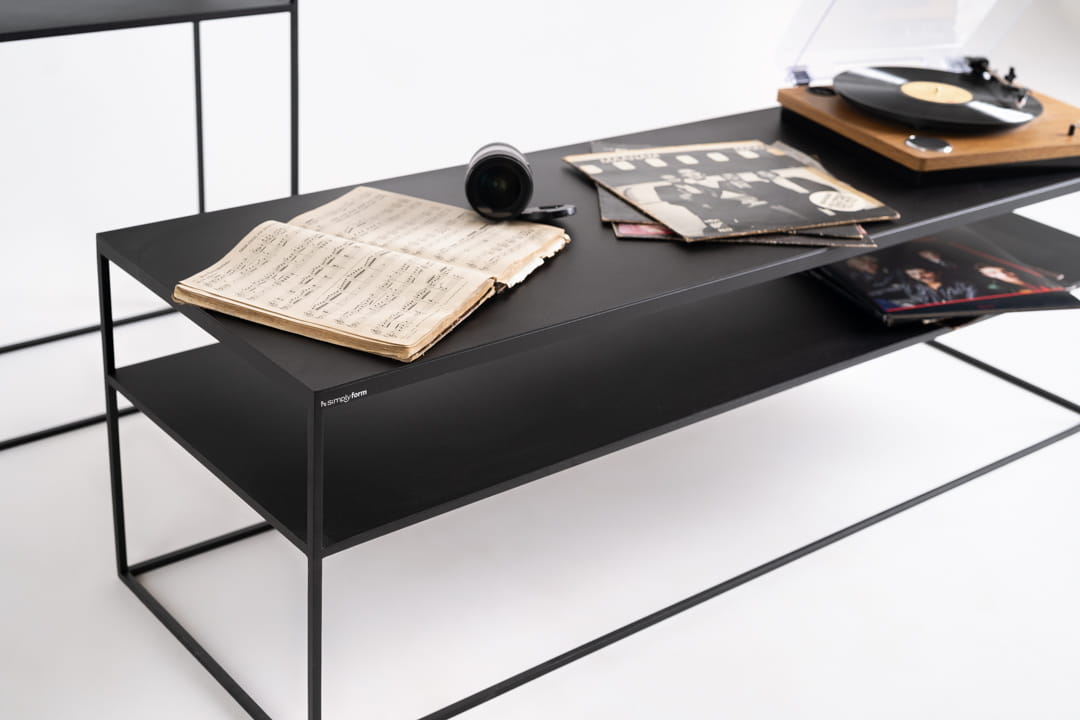 Stolik RTV LINE double wood marki Simplyform - esencja minimalizmu i funkcjonalności w kolekcji dwoma blatami metalowy.