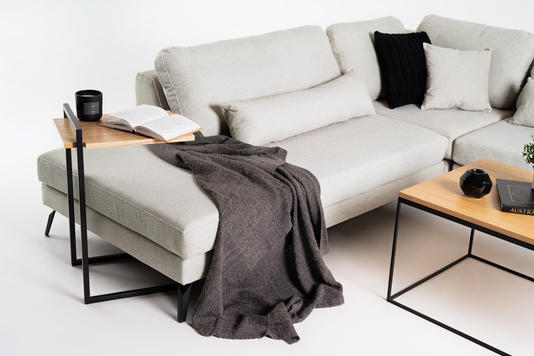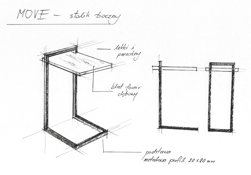 Często brakuje Ci miejsca w salonie na odłożenie filiżanki kawy, książki czy pilota? A może praca z laptopem na sofie jest niewygodna i wymaga lepszego podparcia? Odpowiedzią na te problemy jest stolik boczny MOVE od Simplyform. Dzięki swojej przemyślanej konstrukcji wsuniesz go pod kanapę, zyskując wygodną przestrzeń na laptopa czy filiżankę kawy. Solidna metalowa podstawa (profil 20/20 mm) i elegancki blat z forniru dębowego o grubości 20 mm zapewniają trwałość i styl. Co więcej, możesz dostosować kolor podstawy i wybarwienie blatu, aby stolik był w pełni zgodny z Twoją wizją wnętrza.