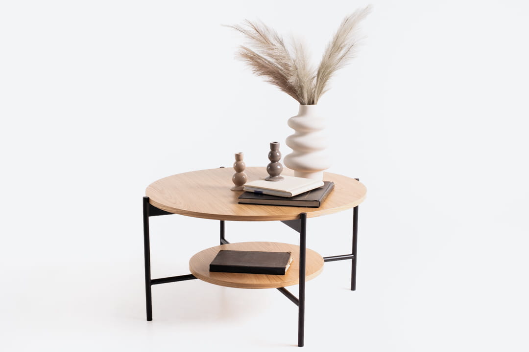 Drugi poziom stolika tworzy wygodne miejsce na drobiazgi, książki czy filiżankę kawy, dzięki czemu blat główny pozostaje zawsze uporządkowany i gotowy do użytku.