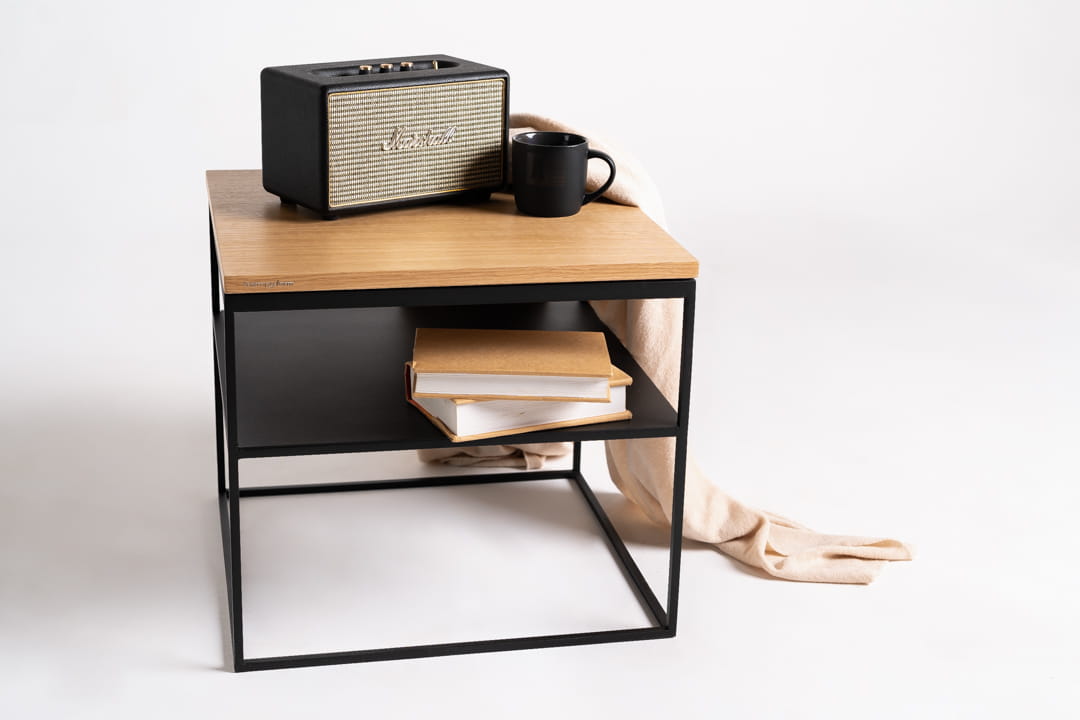 Stolik kawowy LINE double wood 50 – dąb naturalny, czarny