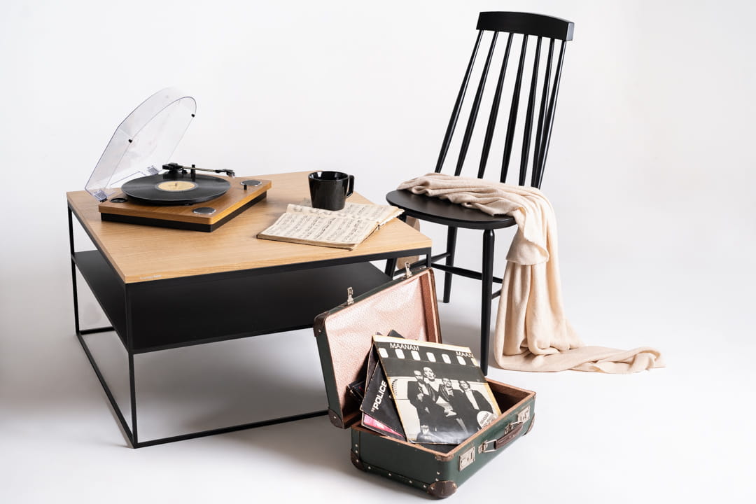Stolik kawowy LINE double wood 80 – dąb naturalny, czarny