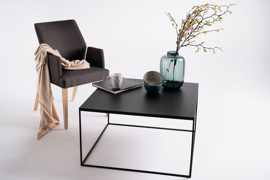 Stolik kawowy LINE metal marki Simplyform - esencja minimalizmu i funkcjonalności w kolekcji z czarnym metalowym blatem.