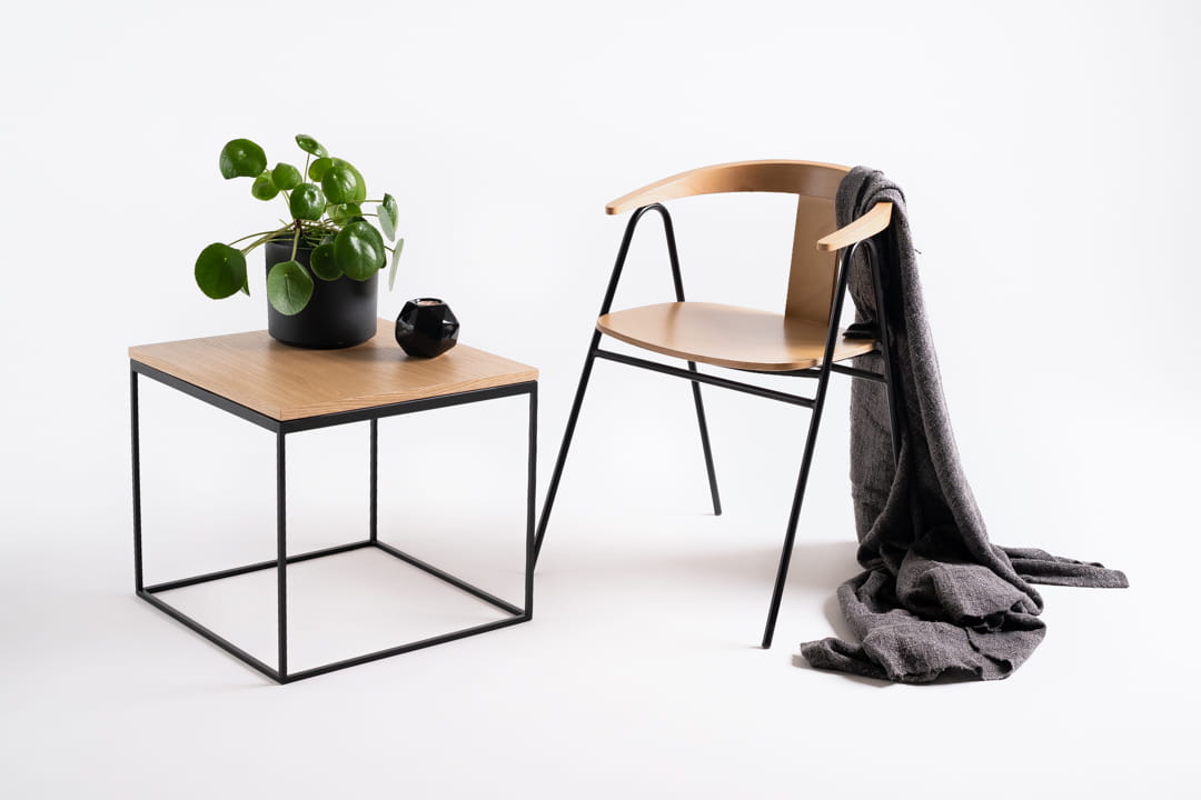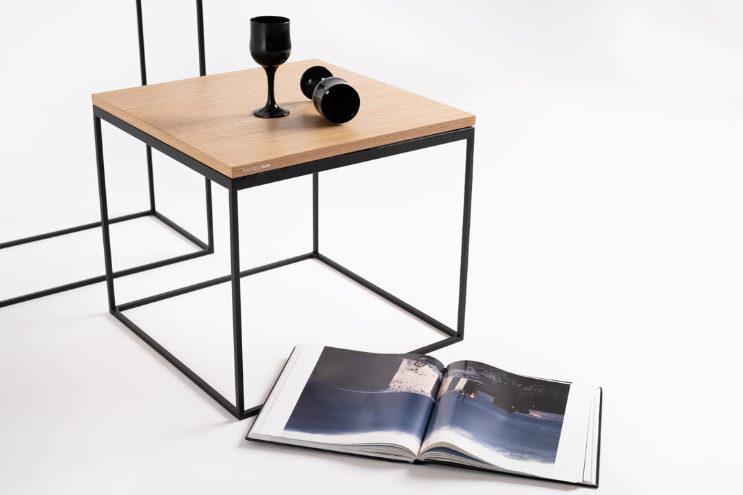 Stolik kawowy LINE wood 50 – dąb naturalny, czarny