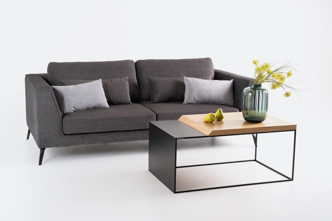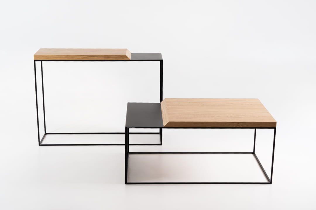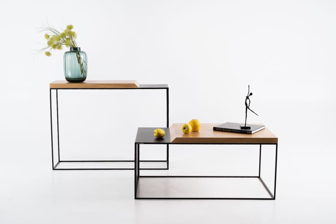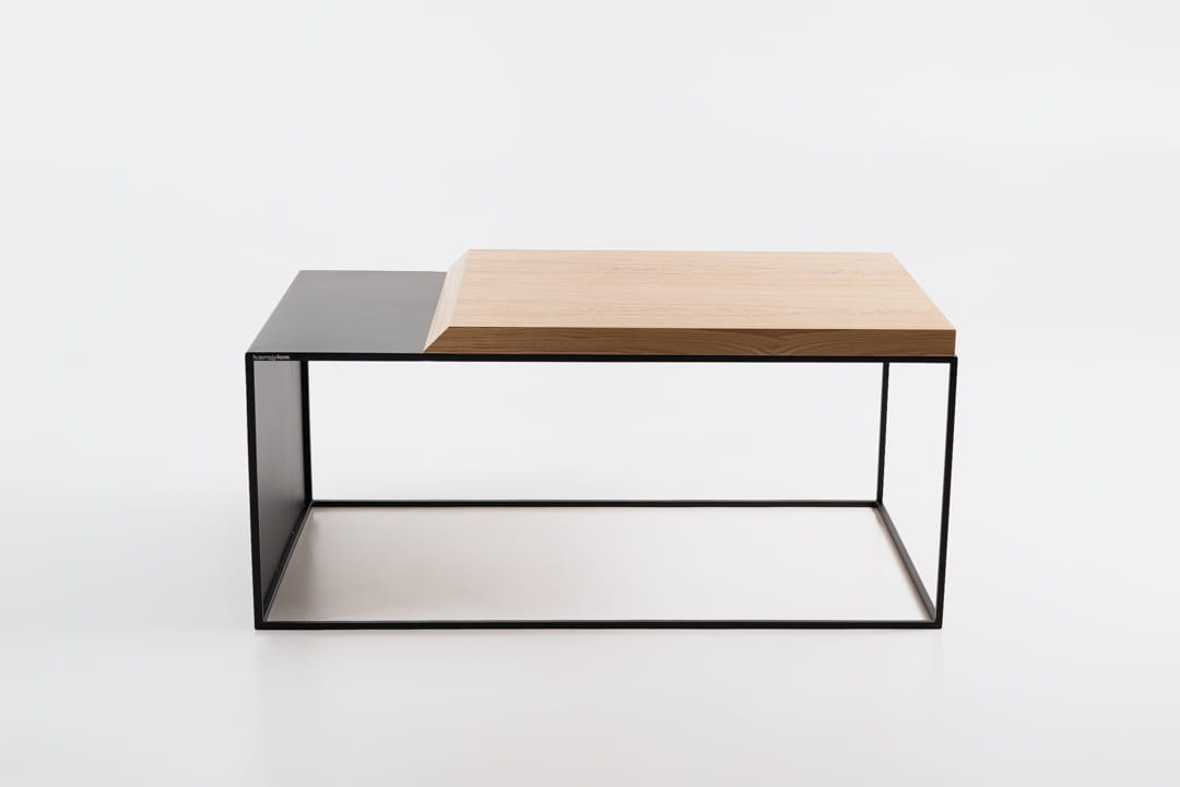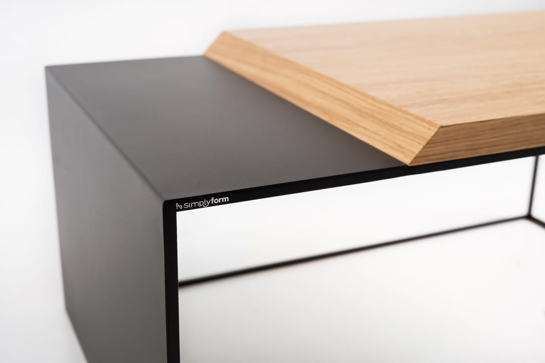 Stolik kawowy REEF marki simplyform – nowoczesny stolik kawowy, który zachwyca unikalnym połączeniem metalu i drewna.