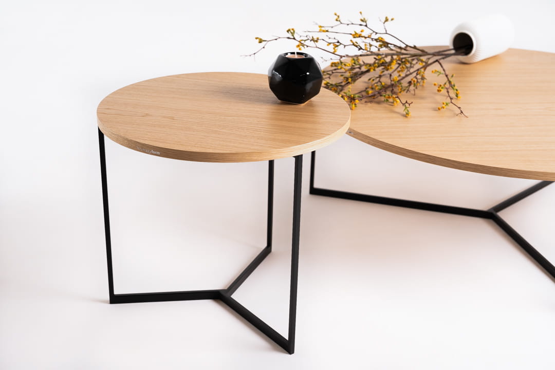 Vega występuje w dwóch różnych wysokościach, co pozwala na tworzenie indywidualnych zestawów, dopasowanych do przestrzeni i potrzeb użytkowników. Elegancki stolik kawowy z naturalnym dębowym blatem i oryginalną metalową podstawą może być używany samodzielnie lub w grupie, tworząc praktyczne i estetyczne aranżacje w salonie czy biurze.
